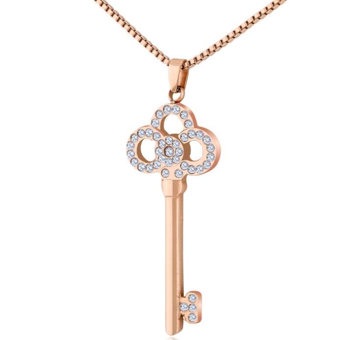 Boutique Stainless Steel Necklace Key Diamond Necklace Female Fashion Jewelry Key Pendant Necklace
