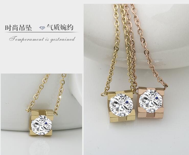 Stainless Steel Jewelry Fashion Pendant Necklace Diamond Round Pink Gold Necklace Images |