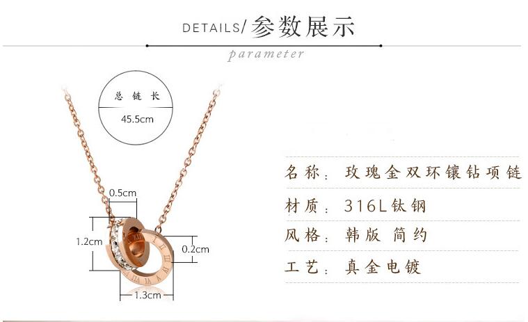Factory Price Stainless Steel Women Jewelry Fashion Diamond Necklace Double Ring Roman Numeral Necklace Images |